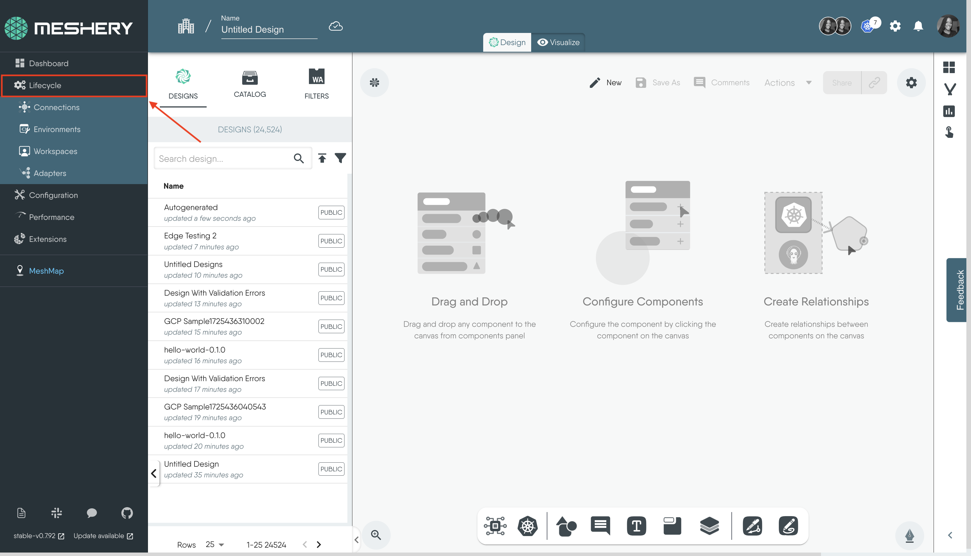 1. Navigate to the left sidebar of Meshery.